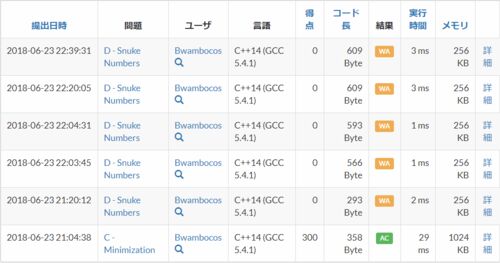 結果 C の1完、957 位中 351 位、レート 1523 (+34) (Highest)。C 問題を落ち着いてノー WA で通すことができたのはよかった。しかし、D 問題で実験しかしてなかったのは悲しかった。 C 問題 問題 数列の中で長さ K の連続した部分列をとり、その中の最小値…