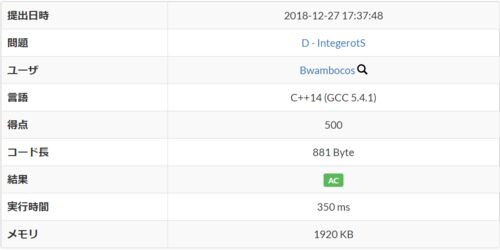 問題 解法 解答 問題 atcoder.jp 解法 紙の (N + 1) 行目~ (H - N) 行目,(M + 1) 列目~ (W - M) 列目 はそれぞれ同じ模様になるので,この2つの区間を座標圧縮することが出来る.また,ハンコの1つ1つの黒マスが紙を黒くする領域は長方形になるので,…