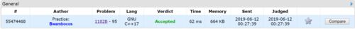 問題 解法 解答 問題 codeforces.com 解法 縦長のタイルは 4x4 のマスの上半分,横長のタイルは下半分にひたすら敷き詰めていけば永遠に敷き詰められる.なぜなら,上半分に関しては 4 つ設置すると上から 1, 2 行目が消えて,下半分に関しては 2 つ横に並べ…