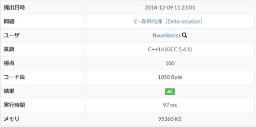 問題 解法 解答 問題 beta.atcoder.jp 解法 「dp(i, j) := 左端から i 個までを切った後のピースの長さが j 以上になるようにうまく切った時の答え」で DP を立てる.DP の漸化式は, dp(i, j) = min( max( dp(k, j), (区間 (k + 1) ~ i の長さ) - j ) ) と…